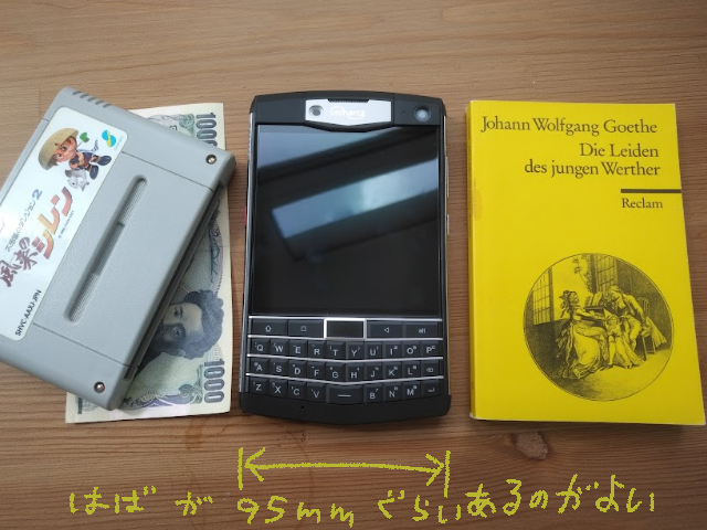 元々自分はブラックベリーを使っていたり、フルキーボードがついている端末が好きだ。なぜ、キーボード付き端末をすでに持っているのに新たに初代タイタンを買ったかというと、寸法だ。初代タイタンは横縦92.5x153.6mmで、初代ゲームボーイの90x148mmに近い。キーの位置や範囲、押した感じも悪くないので、「ゲームボーイ持ち」をしてがっつり文章を書くこともやりやすいと思った。